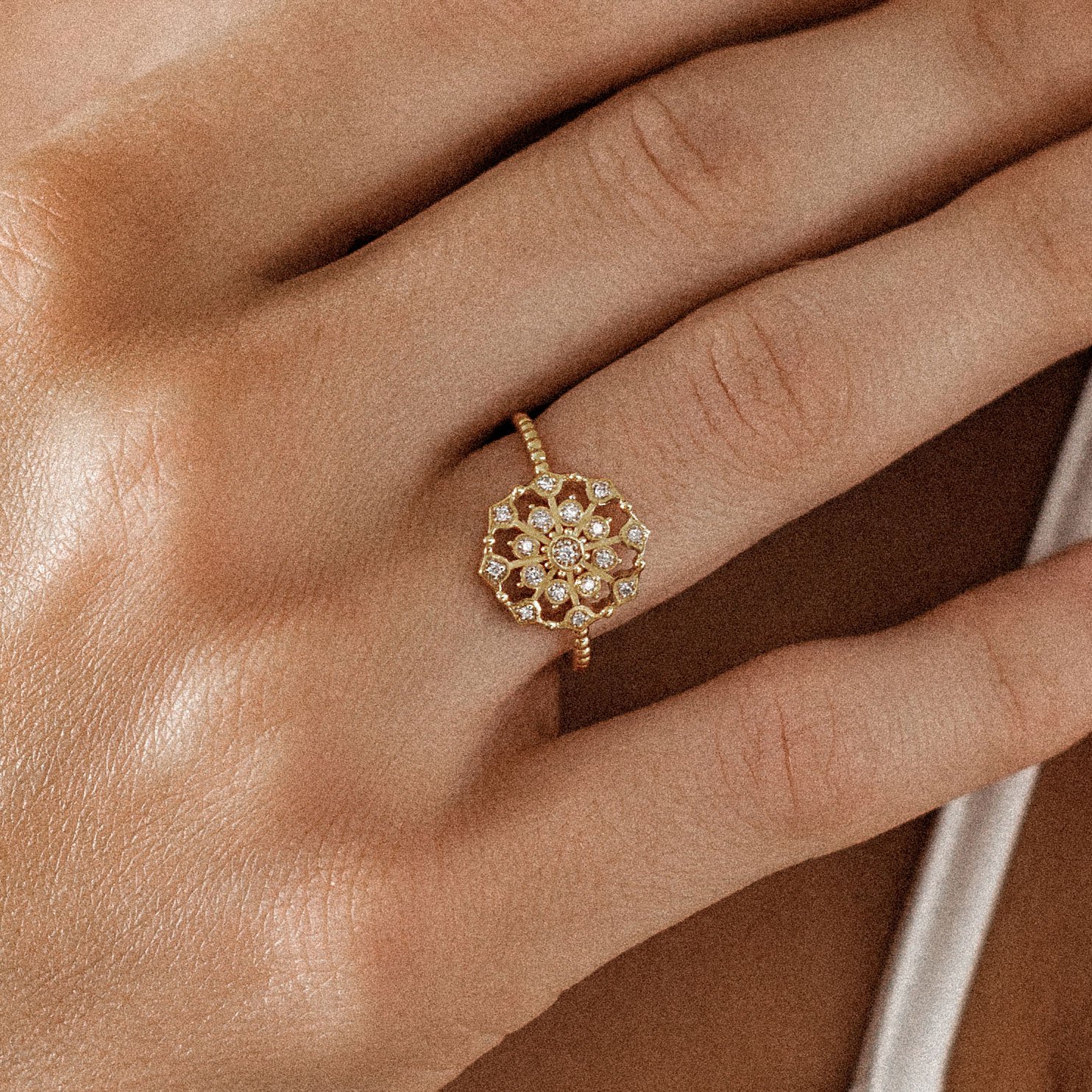 Très présente sur le territoire corse, la fleur d’Immortelle est devenue un symbole de la flore insulaire. Forte et résistante, elle s’épanouit le long de la côte Corse, dans les embruns du bord de mer. Les Corses l’utilisent depuis des millénaires pour ses vertus thérapeutiques et son parfum envoûtant. La créatrice Maria Battaglia consacre une collection entière à cette fleur native de la Corse. Elle la décline en bague, bracelet, collier et en une paire de dormeuses en or jaune 18 carats orné de diamants.